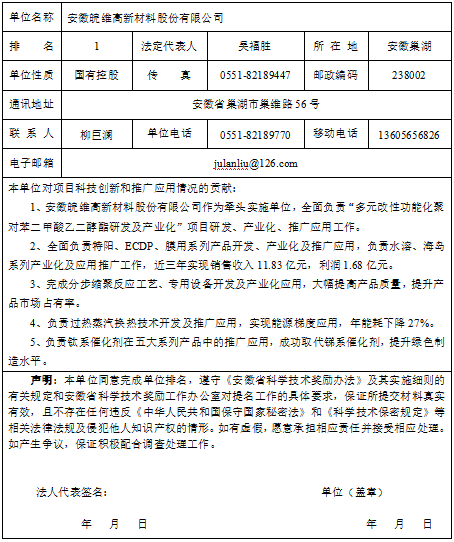 二、提名者:合肥市科技局; 提名意見(jiàn):同意提名。