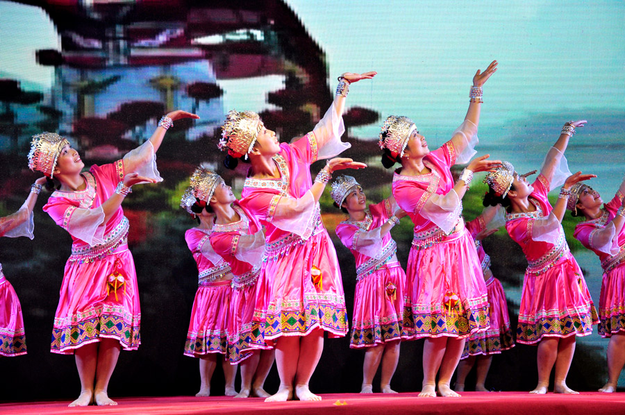 廣西皖維公司的職工們帶來了舞蹈《壯鄉(xiāng)情韻》。與內(nèi)蒙豪邁粗獷不同的是,廣維職工的表演細(xì)膩、深沉,帶有濃濃的壯鄉(xiāng)風(fēng)情,把現(xiàn)場職工帶進了劉三姐的故鄉(xiāng)。表演結(jié)束后,廣維的姐妹還以傳統(tǒng)的拋繡球方式,進步把現(xiàn)場氣氛推向高潮。