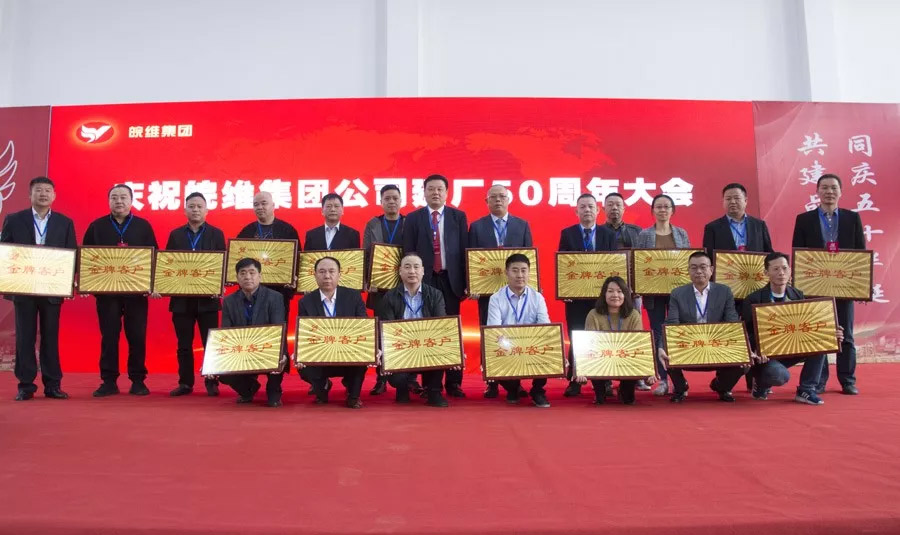 慶祝大會上,集團(tuán)公司黨委書記、董事長吳福勝向福建福維股份有限公司、上海潤蓬貿(mào)易有限公司等20家客戶現(xiàn)場頒發(fā)了“金客戶”榮譽匾。