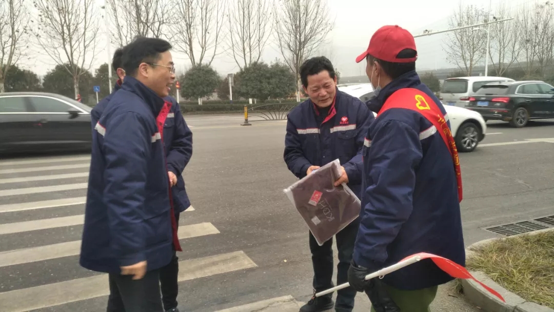 5日上午一上班,唐成宏與黨委工作部、PVA膜分廠、德瑞格公司相關負責人到巢柘路段,慰問正在值勤的志愿者們,為他們送上了圍巾與保溫杯,傳遞著黨組織對他們的一份關心。