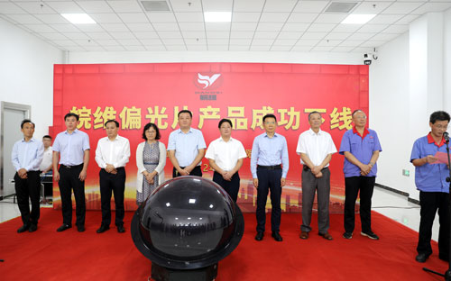 在所有來賓的共同見證下,吳福勝宣布偏光片產品成功下線。巢湖市委書記張紅軍、巢湖市委副書記、市長汪功勝,省國資委規劃處處長馬潤華,合肥市商務局副局長崔霞,公司領導吳福勝、周農杰共同按下啟動球。