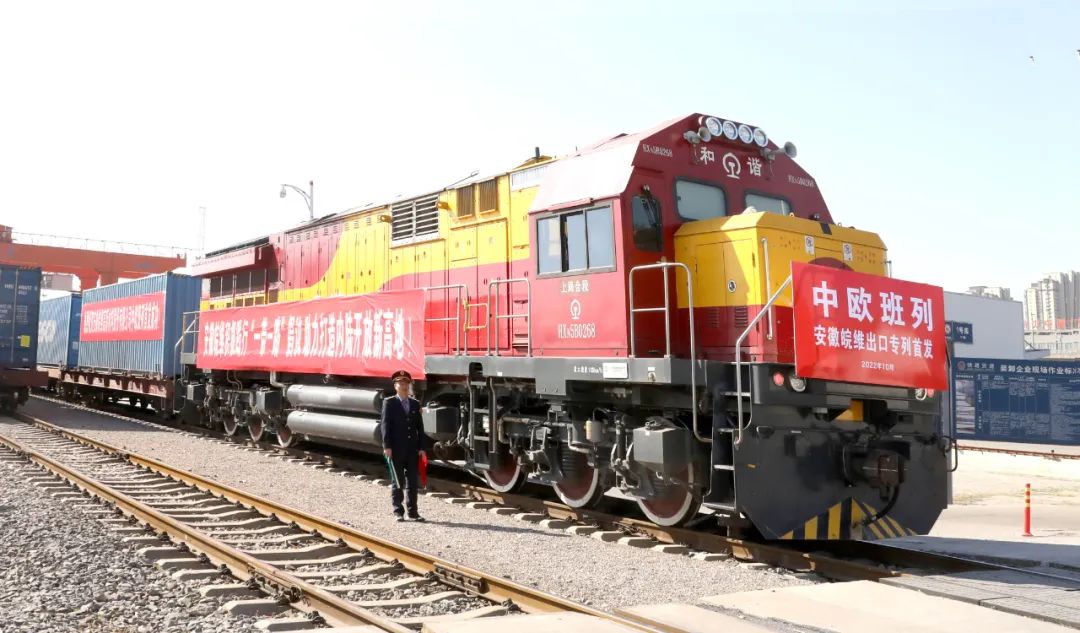 10月19日上午10時許,隨著悠長的汽笛聲響起,滿載100個標準箱的首輛“安徽皖維”定制中歐班列從合肥北站緩緩啟程,沿著“一帶一路”,經二連浩特口岸出境,預計12天時間將一千多噸皖維PVA、可再分散性膠粉,送往歐洲地區。