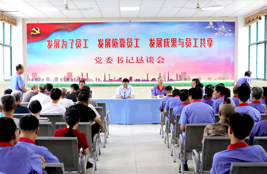 ? 職工暢言抒心聲,情真意切感企恩。9月2日8:30,皖維集團黨委書記懇談會在社區活動室準時召開,部分在崗職工、退休老職工匯聚一堂,同集團公司黨委書記、董事長吳福勝進行零距離交流,拉家常、提建議。集團公司黨委副書記張正和、黨委委員朱中華以及黨委工作部、社區管理中心等職能部門負責人參會。