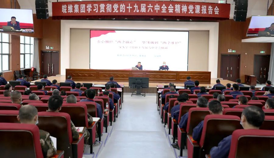 吳福勝圍繞“全面理解黨的十九屆六中全會精神豐富內涵” “深刻領會‘兩個確立’決定性意義”“深入學習貫徹十九屆六中全會精神,奮進‘十四五’,再造新皖維”三個方面深度闡釋了黨的十九屆六中全會的主要成果、《中共中央關于黨的百年奮斗重大成就和歷史經驗的決議》的重大貢獻和精髓要義、“兩個確立”的決定性意義,并結合集團改革發展實際談了思考與體會。報告會主題鮮明、分析透徹、深入人心,參會者整齊就坐、仔細聆聽、認真筆記。