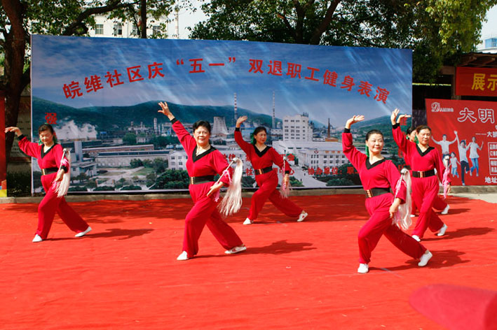 4月26日下午,社區組織“雙退”職工在東區小廣場舉行了慶“五”健身表演活動,近百名“雙退”職工為廣大職工奉獻了場視覺盛宴。200多名職工頂著烈日興致勃勃地觀看了表演。巢湖市老年委、體育局等負責同志應邀觀看。