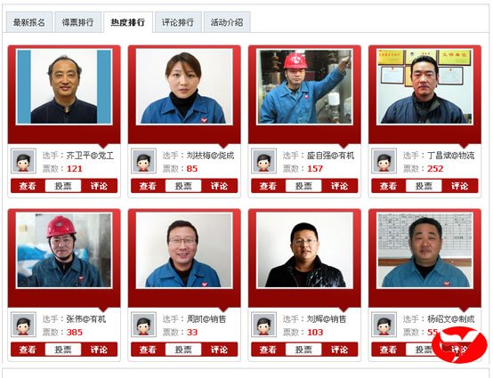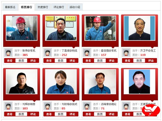 截止12月17日8:00時,評選活動歷時整整24小時,有機分廠張偉得票385,為16日的得票王;黨委工作部的齊衛平人氣關注度1177,是16日的人氣王。兩項指標的前8名見下圖。